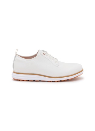This collaborative golf shoe from Cole Haan x United Arrows unites athletic performance with refined styling through a clean lace-up silhouette and contrast midsole detailing. The textured grip outsole delivers superior traction while the streamlined upper maintains sophisticated versatility. A premium hybrid design that transitions seamlessly from course to city.
