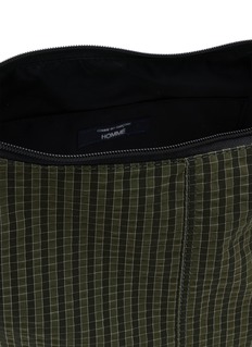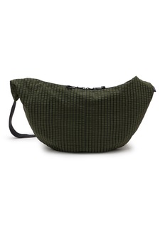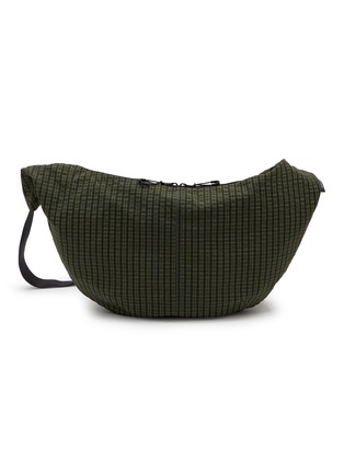 Comme des Garçons Homme presents an oversized belt bag with distinctive grid-check pattern and curved silhouette for enhanced capacity. The structured design with dual-zip top closure and adjustable webbing strap delivers versatile hands-free carrying, while refined detailing and sculptural shape create a statement accessory for modern wardrobes.