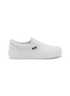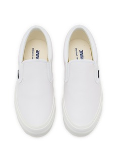 Comme des Garçons Homme elevates the classic slip-on sneaker with pristine minimalist construction and subtle logo branding. The clean-lined laceless silhouette with tonal stitching and cushioned platform sole delivers refined Japanese design sensibility, while the streamlined low-profile shape and understated detailing create versatile everyday luxury for modern minimalists.