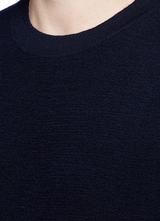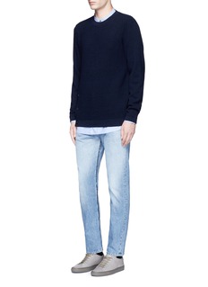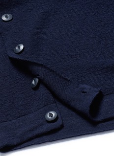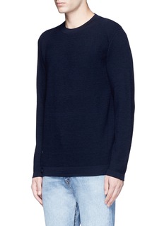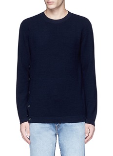 此款Covert的针织衫以高品质取胜,选用深蓝色初剪羊毛织成,利落称身的剪裁贯彻了品牌的简约作风,右衣摆开衩及缀上钮扣,营造不对称效果,低调而不乏特色。
