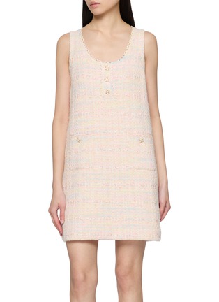 CRUSH Collection 擅长以材质勾勒柔美调性,这款裙装以粗花呢传递复古氛围,排扣装饰强化精致感,无袖版型舒展肩臂线条。