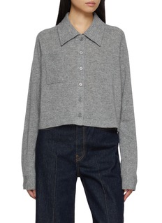 CRUSH Collection 擅于运用羊绒面料及针织技术,打造拥有简约舒适廓形的现代女性服饰。这款衬衫采用细腻羊绒面料,短款剪裁凸显上下比例,贴片口袋带来质感层次。