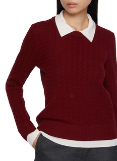 CRUSH Collection 擅于运用羊绒面料及针织技术,打造拥有简约舒适廓形的现代女性服饰。这款针织衫采用 POLO 领和撞色拼接,打造叠穿层次,扭纹细节勾勒精致都市魅力。