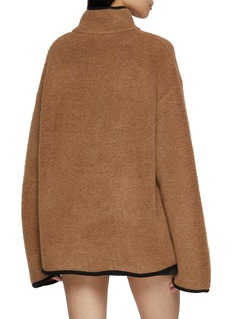 CRUSH Collection 擅于运用羊绒面料及针织技术,打造拥有简约舒适廓形的现代女性服饰。这款上衣采表面经刷毛处理呈现轻盈蓬松的质感,触感柔软温暖。落肩设计勾勒出慵懒廓形,边缘饰以对比色镶边。