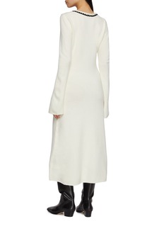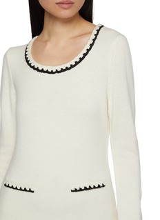 CRUSH Collection 擅于运用羊绒面料及针织技术,打造拥有简约舒适廓形的现代女性服饰。这款连衣裙采用羊毛与羊绒混纺面料精心打造,质地柔软轻盈。经典圆领和口袋处饰以精致的手工钩编饰边,增添立体廓形。