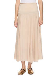 CRUSH Collection 擅于运用羊绒面料及针织技术,打造拥有简约舒适廓形的现代女性服饰。这款半身裙采用微透面料和褶裥剪裁勾勒柔和魅力,拼接细节重构比例,带来优雅步伐。