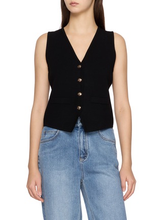 CRUSH Collection 擅于运用羊绒面料及针织技术,打造拥有简约舒适廓形的现代女性服饰。这款马甲以西装式剪裁融合柔润质感,V 领与单排金属扣设计添利落精致,可搭牛仔或衬衫,轻松平衡休闲与通勤的风格氛围。