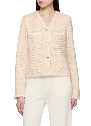 This Crush Collection jacket is a testament to understated elegance. Crafted from a luxurious, textured fabric in a soft cream hue, it exudes a subtle sophistication. The jacket features a classic V-neckline and golden button fastenings that add a touch of glamour. Two patch pockets at the front enhance its practicality, making it as functional as it is fashionable. The relaxed fit ensures it can be comfortably layered over your favorite outfits.