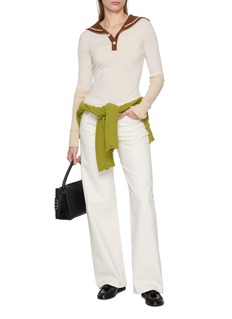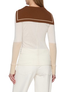 CUDDLEUP presents this unique top that pairs a rich brown sailor collar over a long-sleeve top. It's a playful yet polished look, perfect for adding a nautical twist to your everyday wardrobe.