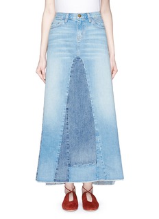 Current/Elliott凭借细致出色的设计,向经典丹宁服致敬。这款拥有A字廓形与及踝长度剪裁的牛仔裙,由深浅不同的蓝色牛仔布拼接面成,予人焕然一新的视觉效果。简单配搭一双平底鞋,即可展示富有复古韵味的个性形象。
