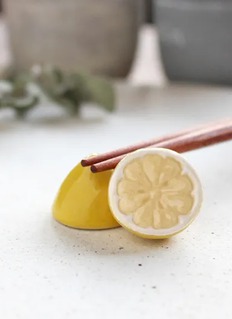切柠檬筷架造型鲜亮,将酸甜活力与日本工艺精致呈现。柠檬切片形态与晶莹釉色,仿佛散发清香,为餐桌注入清新气息。