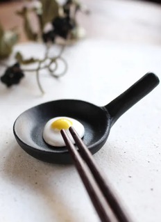 煎蛋平底锅筷架创意十足,将早餐温馨与日本工艺生动结合。锅具造型与嫩黄煎蛋栩栩如生,为餐桌增添趣味生活感。