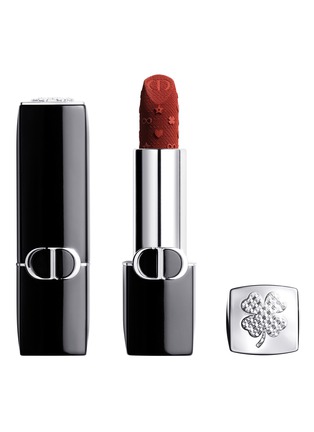 Dior unveils a limited edition with 4 radiant shades in a velvet finish. Wrapped in exclusive couture cases and topped with Monsieur Dior's lucky symbols: the Dior star, the four leaf clover, the heart, and the number 8, which also adorn the lipstick bullet. Rouge Dior is based on hydrating floral lip care and infused with a peony extract, leaving lips looking plump and smooth for hours.