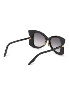 Embrace the essence of Parisian elegance with Christian Dior's sunglasses. These sunglasses feature a dramatic cat-eye silhouette with a sleek black finish, accented by polished gold details that enhance the luxurious appeal. Ideal for those seeking a blend of boldness and sophistication, these shades provide complete UV protection while making a fashion-forward statement.
