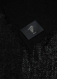 This discord Yohji Yamamoto scarf exhibits understated elegance with its textured grey and black weave. The luxurious blend of materials and fringed edges adds a touch of sophistication to any outfit, making it a must-have accessory for the season.