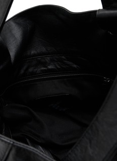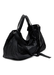 Discover the dynamic elegance of the Ribbon Tote by discord Yohji Yamamoto. This tote bag stands out with its distinctive central drape, accentuated when carried by the handle. The removable shoulder strap offers versatile crossbody wear, while the adjustable handle and ribbon tension allow for a customisable silhouette.