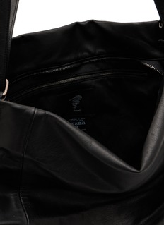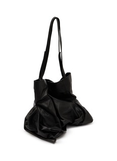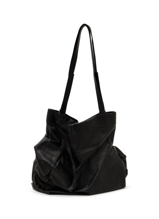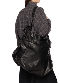 This Unevenness Tote Bag from discord Yohji Yamamoto challenges convention with its organic, irregular shape and draped, supple leather. The striking raised edges and fluid silhouette create a dynamic interplay of structure and movement, embodying raw elegance and avant-garde design. A bold statement for those who embrace artistic individuality.