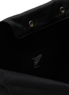 Discord Yohji Yamamoto's oversized hobo bag reimagines utilitarian design through sculptural draping and deconstructed tailoring elements. The slouchy silhouette features a single shoulder strap with button-tab detailing, spacious unstructured body, patch pocket accents, and signature snap closure. Avant-garde functionality meets poetic minimalism.