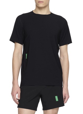 Engineered for movement, this race tee by District Vision is crafted from a breathable polyamide blend infused with wool for natural temperature regulation. Its subtle grid texture enhances airflow while maintaining a sleek athletic profile, making it ideal for endurance runs or focused training sessions.
