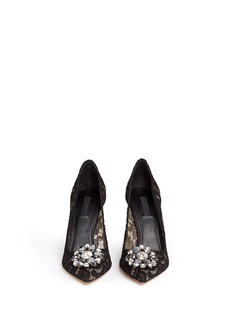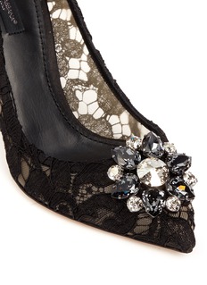 全蕾丝设计最能展现杜嘉班纳品牌基因中的浪漫华丽气息,经典黑色蕾丝高贵又百搭,绝对是每位女士的必备单品。鞋头精致的花卉形施华洛世奇仿水晶点缀令您时刻光彩夺目,配上拉长身型比例的高跟设计,最适合搭配高贵优雅的造型。
