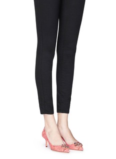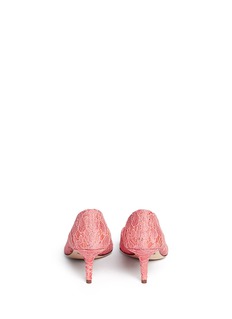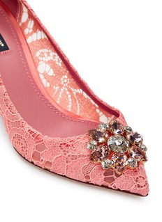 全蕾丝设计最能展现杜嘉班纳品牌基因中的浪漫华丽气息,这款粉红色蕾丝中跟鞋予人浪漫清雅、纯洁贵气的感觉,鞋头搭配精致的花卉形仿水晶点缀,中跟设计舒适实穿,让您自然流露出贵气淑女气质。