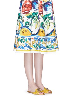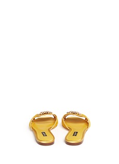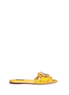 杜嘉班纳的蕾丝元素颇具辨识度,唯美精致而且极具女人味。这款平底凉拖的橙黄色蕾丝透出活力生机,鞋头多颗耀眼的施华洛世奇仿水晶拼出精美的花卉形状,散发低调华丽气息,完美表现您优雅气质。