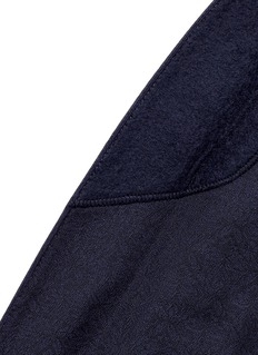杜嘉班纳此款西服套装彰显您的品位,选用富光泽感的混初剪羊毛面料制作,通身附有细致的提花图案,青果领、包布钮扣的设计别具贵气,裤子两边附有条状拼接,增强细节和立体感,配以称身版型,让您显得帅气潇洒。