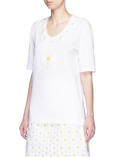 杜嘉班纳透过精致细节扭转T恤的简约感,剪裁简洁利落,纯棉面料柔软亲肤,领部至肩部的黄色及白色雏菊造型拼贴与中央一朵大雏菊相呼应,别具清新气息。