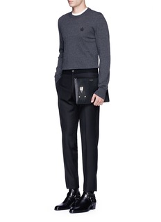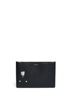 这款杜嘉班纳的牛皮手包绝对是点亮造型的不二之选。在黑色纹理真皮的衬托下突显了西西里男士造型拼贴缀饰的独特奇趣,并加入小巧的金色品牌标志,进一步提升辨识度,简单有力地彰显了品牌的鲜明个性。