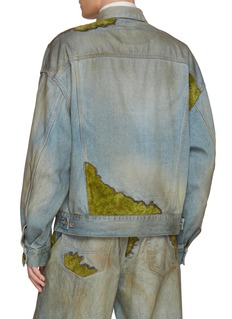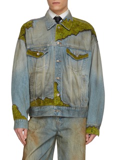 This doublet denim jacket pushes boundaries with its organic, textured moss-inspired patches, blending nature-inspired artistry with avant-garde streetwear. The oversized fit and distressed details create a bold, unconventional statement, embodying the brand’s signature playful, experimental edge.