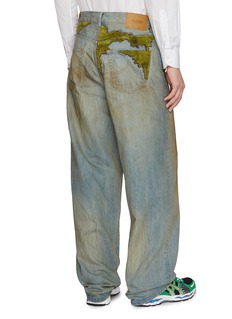 This doublet jeans pushes boundaries with its organic, textured moss-inspired patches, blending nature-inspired artistry with avant-garde streetwear. The oversized fit and washed finish create a bold, unconventional statement, embodying the brand’s signature playful, experimental edge.