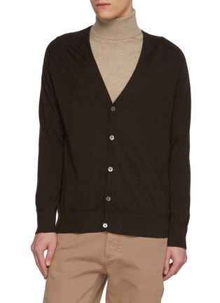 Dreyden crafts luxurious cashmere knitwear, blending heritage craftsmanship with modern sophistication. A classic silhouette, this v-neck cardigan is crafted in a timeless black hue for endless versatility.