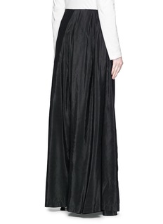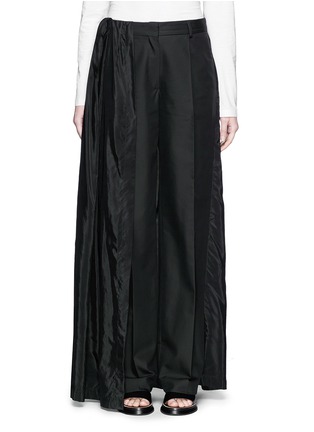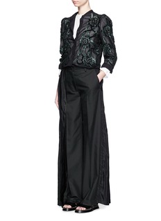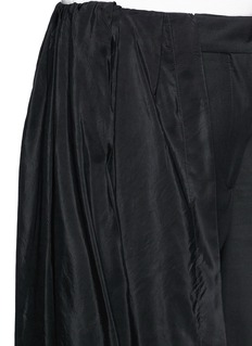 Dries Van Noten时有浪漫而前卫的时尚单品,这款主体结构是干练强势的阔腿裤款式,外部以黑色半身长裙包裹,行走起来潇洒气派,带来独特的酷感风格。棉混丝面料轻薄舒适,更显飘逸灵动的身姿。