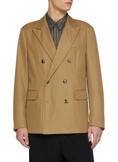 Dries Van Noten reimagines timeless tailoring with this double-breasted blazer, featuring peak lapels and structured flap pockets that exude executive elegance. The relaxed, boxy silhouette and full-button closure offer a contemporary take on classic suiting, while precise construction ensures a refined drape. A statement piece that bridges heritage craftsmanship with modern sophistication.