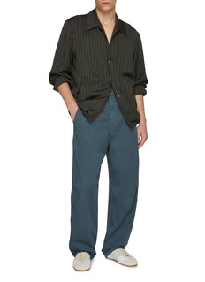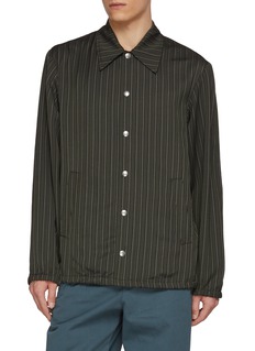 This Dries Van Noten shirt is a testament to classic style with a modern twist. The deep, richly hued stripes offer a bold aesthetic, while the relaxed fit and lightweight fabric ensure comfort and ease of movement. Distinctive for its sharp collar and button-down design, this piece is effortlessly versatile.