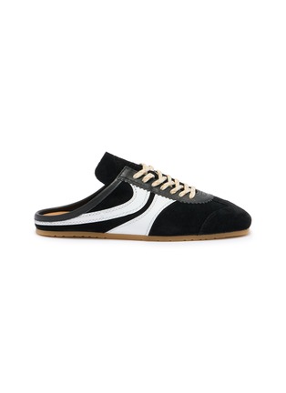 Dries Van Noten 注重剪裁与流动感,同时通过独特的图案和色彩运用,展现女性魅力的同时也拥有现代感和艺术气息。这款穆勒运动鞋采用不同质感的皮革拼接,线条交错,编织日常浪漫。