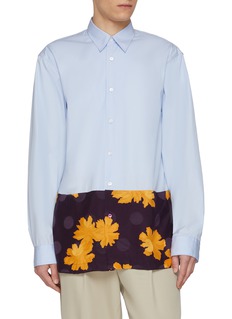 Clean lines meet graphic expression in this long-sleeve shirt, where crisp cotton poplin is interrupted by a contrasting floral polka-dot panel. True to Dries Van Noten’s poetic approach, the design balances precision and play, ideal for elevating tailored looks with an artful twist.