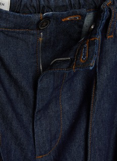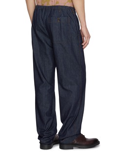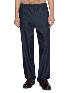 Dries Van Noten reinvents casual comfort with these relaxed-fit trousers, featuring an elasticated drawstring waist and straight-leg silhouette that merge laid-back ease with refined tailoring. Contrast topstitching adds subtle craftsmanship detail to the clean, streamlined design. An effortlessly versatile piece that elevates everyday dressing with Belgian design sensibility.