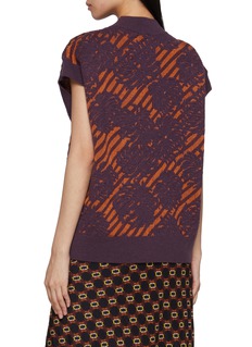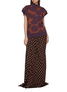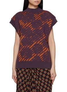 Dries Van Noten 以繁复印花、奢华面料和精致剪裁著称,融合东西方元素,展现浪漫与优雅并存的独特美学。这款针织背心采用抽象几何图案设计,撞色条纹营造强烈视觉冲击力,宽松版型带来舒适穿着体验。可搭配阔腿长裤或中长半身裙,演绎知性艺术气质。