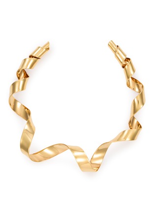 Elevate your look with this Dries Van Noten necklace, where fluid gold metal twists into an organic, sinuous silhouette for a statement that’s both bold and refined. Its striking design and luxurious finish add a touch of avant-garde sophistication to any ensemble. A must-have for those who embrace artistic expression and timeless elegance.