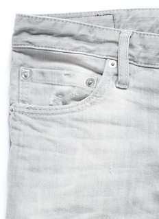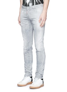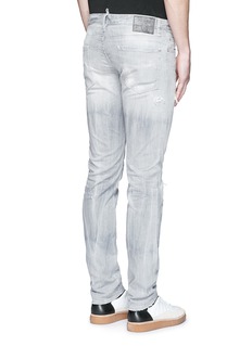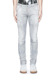 DSQUARED2这款牛仔裤以干练利落的修身剪裁突显男士的笔直双腿,水洗灰色牛仔布上加入磨破及泼漆设计,令整体更加潇洒随性,可简单搭配T恤及白色球鞋,打造低调前卫的街头风格。