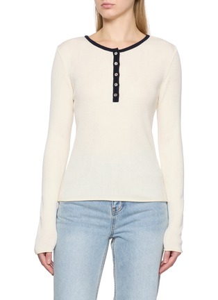 DUNST 意为 “无形”,品牌从日常街头获取灵感,专注于与当代文化与千禧世代和谐相处的情感设计。这款上衣以精致纽扣领与拼色细节灵动交织在针织肌理中,造型随性而不失优雅。