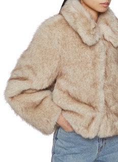 DUNST 意为 “无形”,品牌从日常街头获取灵感,专注于与当代文化与千禧世代和谐相处的情感设计。这款夹克以柔软环保的仿皮草材质勾勒出干练短款廓形,兼顾时尚态度与可持续理念。