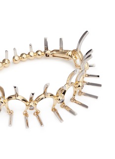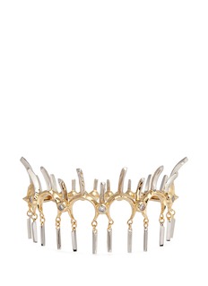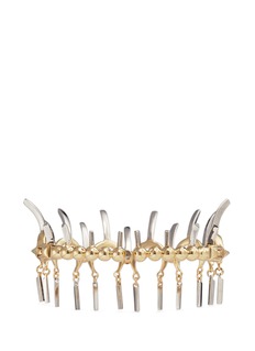 这款手镯来自以摇滚朋克风格著称的伊迪波哥,金银拼色涂层发放华丽抢目的光芒,拱形设计别致独特,拼接的条纹塑造出流苏效果,让您从姿态间自然流露出灵动美感。