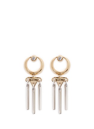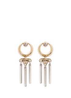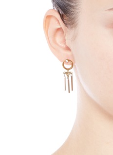 伊迪波哥的配饰糅合传统美式风格与朋克格调,是展示硬朗自信的理想选择。这款耳环来自品牌Sibyl系列,以三条镀银黄铜流苏配以镀金黄铜圆环,随着您的动作摇曳出精致优雅的风范,是您通勤或搭配晚装的摩登之选。