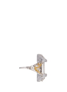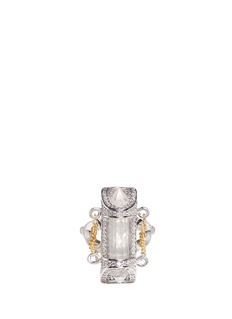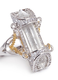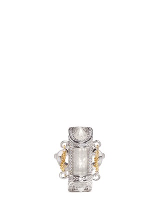 伊迪波哥的配饰糅合传统美式风格与朋克格调,是展示硬朗自信的理想选择。这款戒指的设计充满未来感,镀银黄铜缀以透明晶石,中央镶嵌一颗锥形柱体晶石,造型独特,为您的个性形象带来点睛之效。
