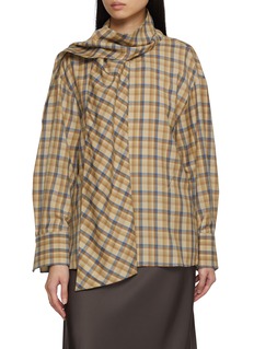 This draped blouse from Edition blends classic checks with contemporary fluidity. Its innovative draped collar and asymmetrical design transform traditional tailoring into a modern statement. Crafted for those who appreciate timeless patterns with a bold, architectural twist, this piece effortlessly bridges sophistication and avant-garde style.