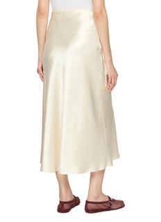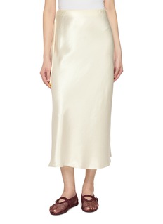 Defined by a fluid satin drape, this midi skirt is finished with a discreet hand-embroidered motif that reveals itself in motion. Edition brings a poetic sensibility to evening dressing, pairing softness and precision for effortless elegance from day to night.