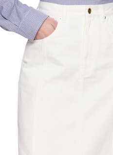 这款 A 字裙以静谧的结构感剪裁,通过挺括棉质丹宁与修长线条,展现 EENK 对日常着装的精致诠释。简洁廓形轻松驾驭工作日的考究造型与休闲时光的惬意氛围,无论是衬衫还是柔软针织衫都能完美搭配。
