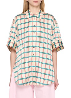 EENK reimagines the classic button up with playful precision. Graphic stripes in contrasting directions create visual rhythm, while the relaxed silhouette softens the tailored codes. Wear it loose over wide leg jeans or half tucked into tailored pants for effortless summer polish.